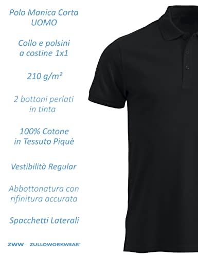 ZULLO WORKWEAR Polo Uomo Nera da Lavoro Personalizzata con Nome o Testo (M, Nero)
