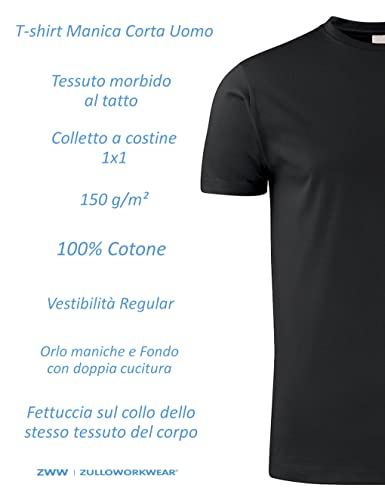 ZULLO WORKWEAR T-Shirt Uomo Nera da Lavoro Personalizzata con Nome o Testo (M, Nero)