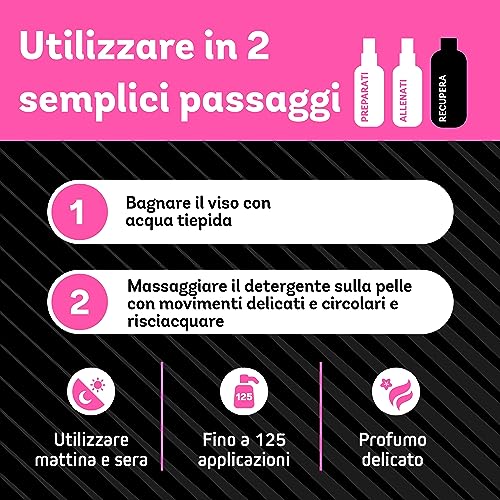 INGRADIENTI DELICATI E DI QUALITÁ: Rinuncia ai detergenti aggressivi che possono danneggiare la tua pelle e scopri la nostra soluzione delicata ed efficace. Questo detergente viso idratante può essere utilizzato quotidianamente come parte della vostra routine di bellezza. La sua texture leggera e profumata dona una piacevole sensazione di freschezza che vi farà sentire ogni giorno come nuovi.