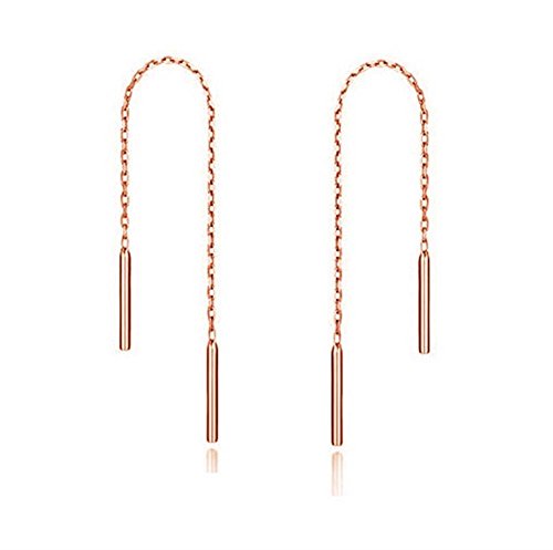 ZUMUii Butterme 925 Silver Bar Infila Tirare Attraverso Belcher Orecchini a Catena per Le Donne Signora Girls (Oro Rosa)