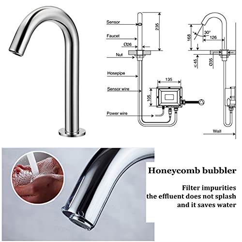Zunate Rubinetto Automatico, Rubinetto di Lavaggio a Sensore Infrarossi con Filettatura G1/2", Rubinetto per Lavello da Cucina in Acciaio Inox senza Contatto a Batterie, per Bacino da Cucina(C)