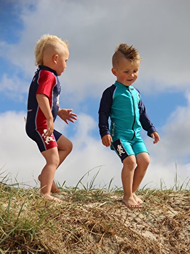 - Le taglie sono tagliati con sottile, poiché la protezione UV indumenti anche in acqua deve avere una buona vestibilità. Se il bambino si trova tra due taglie, si consiglia di optare per la maggiore dimensione.