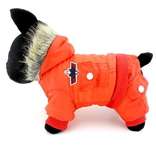 ZUNEA Airman Tuta invernale per cani di piccola taglia con cappuccio in pile impermeabile caldo cappotto pet cucciolo giacca tuta snowsuit vestiti chihuahua abiti rosso medio