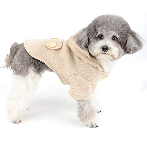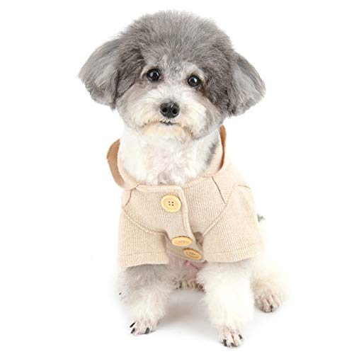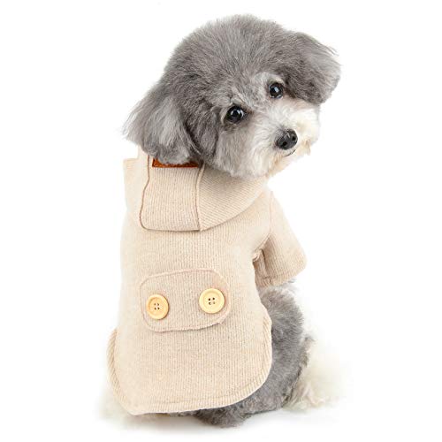 Zunea Felpa con Cappuccio per Cani Piccola Taglia Invernale Cappottino per Cucciolo Caldo Maglione a Maglia in Cotone Abbigliamento Stagione Fredda Gatti Vestiti per Chihuahua Yorkshire Beige XL