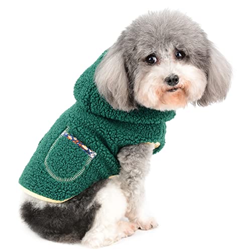 Zunea Felpa con Cappuccio per Cani di Piccola Taglia Fuzzy Fleece Invernale Cappotto Maglione Caldo Vestiti per Cuccioli Morbido Soffice Costume Natalizio Abbigliamento per Chihuahua Yorkie Verde M