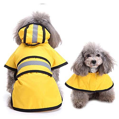 Zunea impermeabile per cani con cappuccio, leggero, regolabile, riflettente, poncho Slicker, con cappuccio, giacca antipioggia per cani di taglia piccola, media, grande, giallo, XL