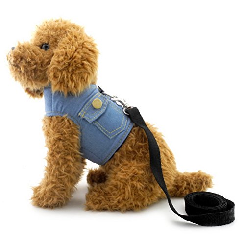 Zunea - Pettorina per cani di piccola taglia, in denim morbido, regolabile, imbottita, taglia S, colore: Nero