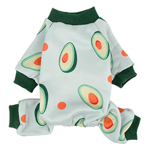 ZUNEA Pigiama per Cani Piccola Taglia Invernale Caldo Cappotto Tuta Vestiti in Morbido Cotone Pigiama Cucciolo Abbigliamento Dormire Avocado Stampato Pet Pullover Abiti per Chihuahua Cani Verde XL