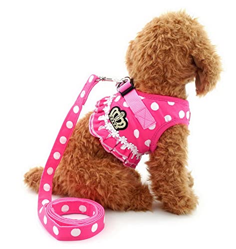 Zunea Polka Dots Girl Piccolo Puppy Dog Cat Vest Imbracatura e guinzaglio Set Rete Imbottita Traspirante Regolabile No Pull Piombo Rosa L