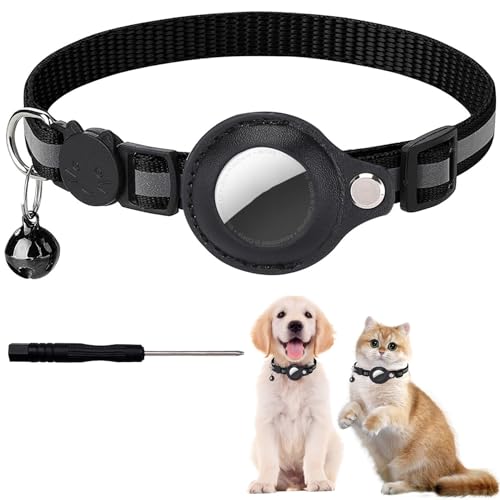 Zuroki Airtag Collare Gatto Antistrozzo,Collare per Accessori Cane Gatto di Localizzazione, Porta Localizzatore, Collare Per Gatti Per Apple Airtag Riflettente Regolabile con Chiusura di Sicurezza