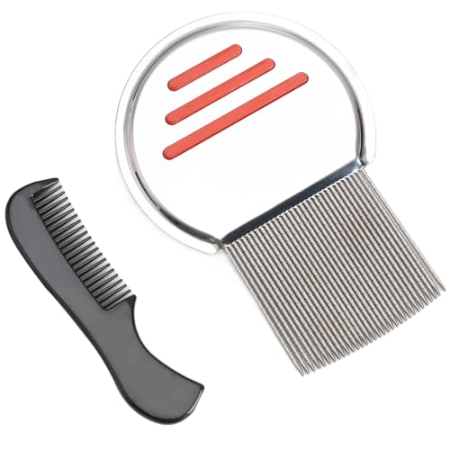Zuroki Pettine anti pidocchi in acciaio inossidabile e metallo + mini pettine nero, Pettini Professionali Trattamento Pidocchi in Acciaio Inox Per Eliminare Efficacemente, Pettine Pidocchi