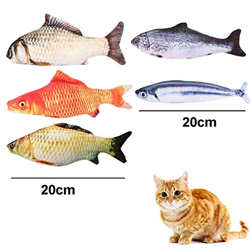 [35 set di giocattoli per gatti] 5 giocattoli per gatti lunghi 20 cm e 30 palline colorate di peluche. Otterrai pesce gatto, carpa rossa, carpa erbosa, salmone, saury, in grado di soddisfare le diverse esigenze dei gatti.