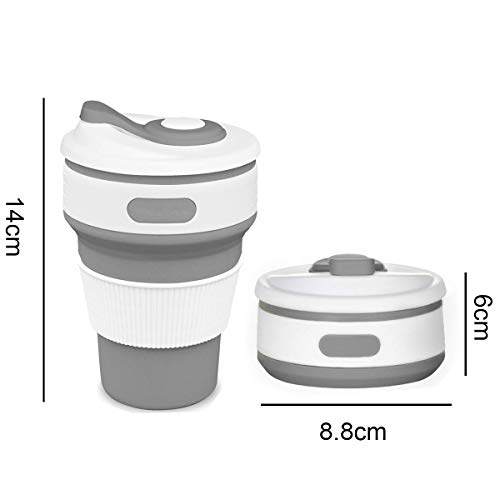 Zuzer Tazza Pieghevole, 2pcs Coppa Pieghevole in Silicone Portatile Tazza da caffè Tazza da Viaggio per Picnic Viaggio Campeggio(Grigio + Blu)