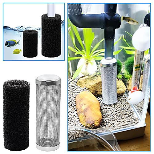 ZUZGO Filtro in acciaio inox per acquario, filtro esterno 16 mm, protezione filtro con spugna filtrante per proteggere le piastrelle, i gamberetti, 4 pezzi