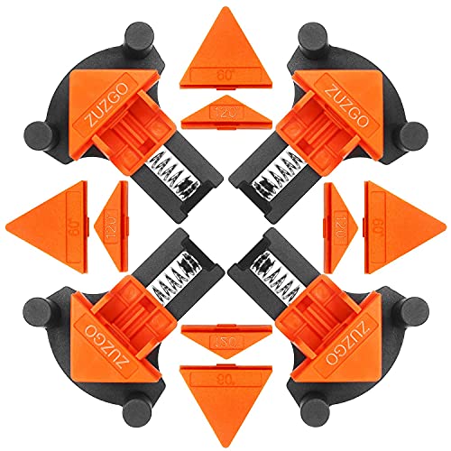 ZUZGO Morsetto angolare, set di morsetti angolari, morsetto angolare, morsetto angolare, 60 90 120 gradi, per lavorazione del legno, foratura e costruzione di mobili (4 pezzi)