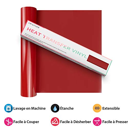 Zwanzer,Rotolo flessibile termoadesivo per tessuto, 30.5 cmx3.7 m, per cricut e Silhouette, in vinile, termoadesivo, facile da tagliare e spolverare, colore: Rosso