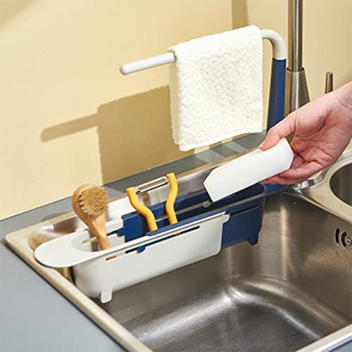 Zwbfu Supporto per lavello da cucina, scolapiatti retrattile per lavello, appendiabiti per strofinacci, portasciugamani in spugna per cucina di casa
