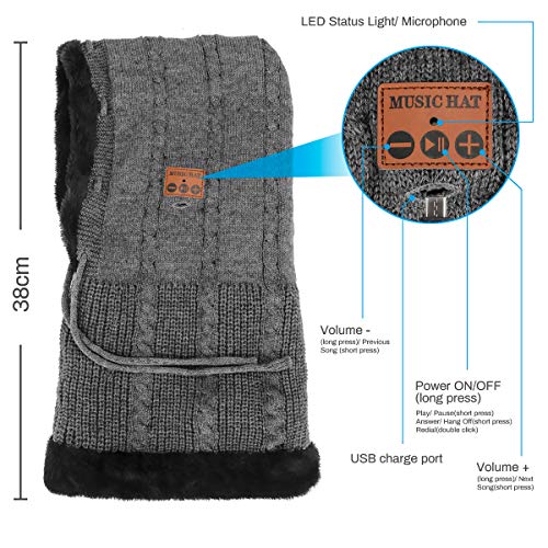 【Fodera in pile doppio strato Kn】- Speciale design siamese, questo cappello bluetooth lavorato a maglia invernale con sciarpa protegge la testa e il collo, dandoti più calore quando fa freddo.