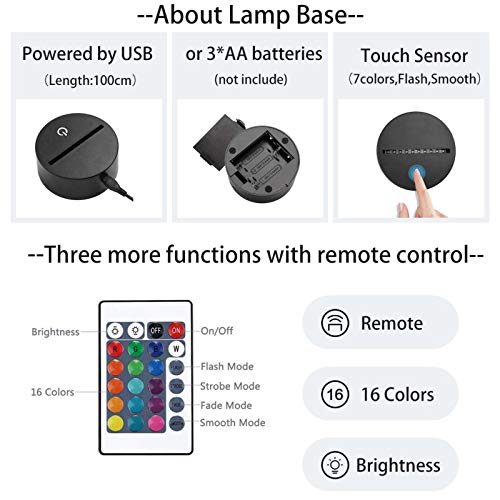 Alimentatori multiplus: le luci LED 3D possono essere azionate con il cavo USB incluso o 3 batterie AAA (non incluse), il che lo rende una lampada USB notturna e a batteria a risparmio energetico.