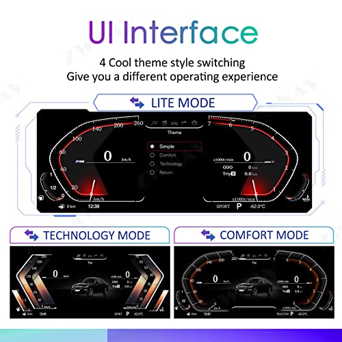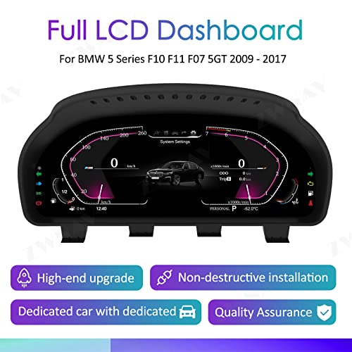 ZWNAV Pannello cruscotto digitale per auto Virtuale Cockpit Tachimetro Pannello strumenti per BMW Serie 5 F10 F11 2009-2015 F07 5GT (Pannello digitale con fibra AUX)