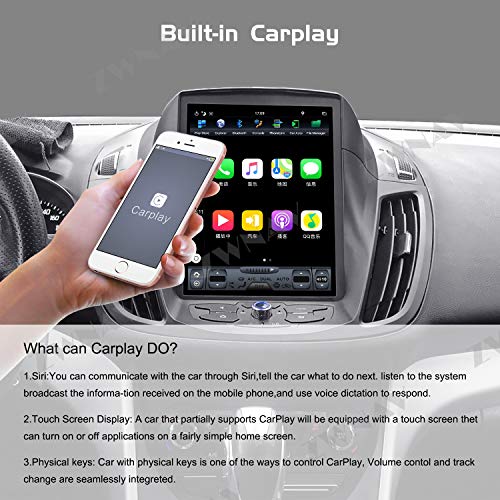 ZWNAV Schermo verticale da 10.4 pollici Android 9.0 One Din Auto Stereo Navi Bluetooth Navigazione GPS per Ford Kuga Escape 2013-2018 Adattatore testa unità Wifi Carplay (4 + 64 GB)