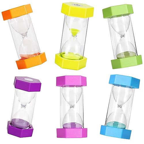 ZWOOS Set di 6 clessidre colorate per bambini - 1, 3, 5, 10, 15 e 30 minuti timer ideale per aule, cucina, giochi e decorazioni per la casa - regalo creativo