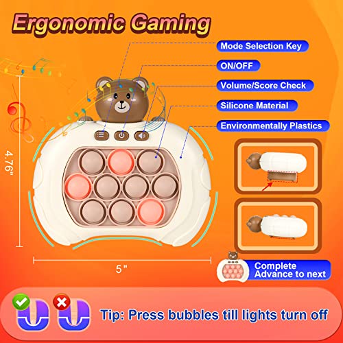 【Giocattolo per l'apprendimento migliorato】 Il coinvolgente gioco classico con le bolle a pressione incontra il gioco elettronico dal ritmo incalzante! Con sfide giocose piene di luci e suoni, i bambini esercitano il pensiero positivo, la coordinazione occhio-mano e l'allenamento cerebrale, migliorando lo sviluppo sensoriale del bambino.
