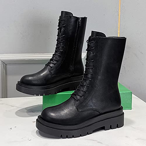 ZXCN Donne Stivali Invernali Moda Nero Piattaforma In Pelle Stivali Gotici Punk Combattimento Stivaletti Moda Addensare