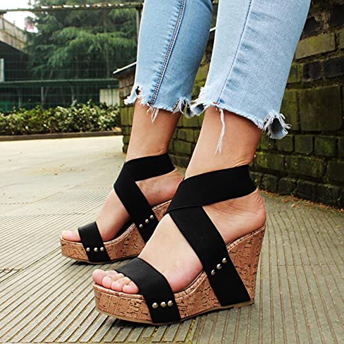 ZXCN Sandali da Donna Estivi Sandali con Plateau Scarpe con Tacco Alto Cinturino Elastico Gladiatore con Zeppa