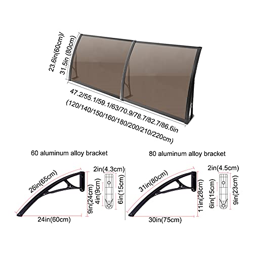ZXCVBNAS Tenda da Veranda Pensilina,Capottina per Porta O Finestra per Esterno,Tetto Policarbonato Alveolare Trasparente,Tettoia Protezione Ultravioletta (UV), Veranda Alveolare,60x120cm/24x48in