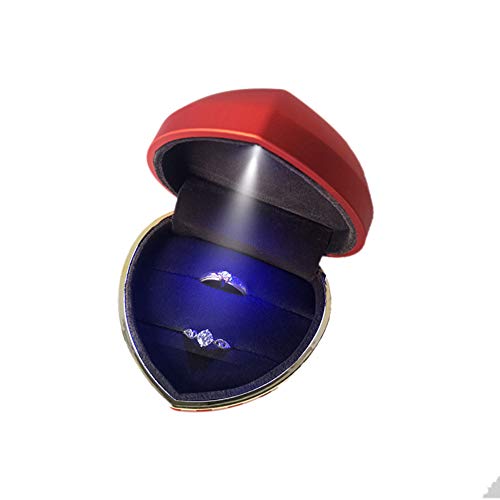 ZXCY Luce LED A Forma di Cuore Porta Anelli Ring Box Contenitore di Gioielli per Gioielli con Anello in Velluto per Il Matrimonio di San Valentino,Rosso