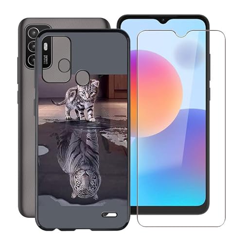 ZXLZKQ Custodia per ZTE Blade A52 (6.52 Pollice) con [1 X Vetro temperato Pellicola Protettiva ], Nero Morbida Silicone Antiurto TPU Cover per ZTE Blade A52 - Gatto e Tigre