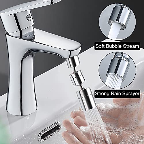 ZXShow 720 Gradi Aeratore per Rubinetto Girevole Cucina 2 Modalità Aeratore Universale Aeratore Rubinetto Doppia Funzione Filtro per Risparmio Idrico con Adattatore da M22 a M24 per Bagno