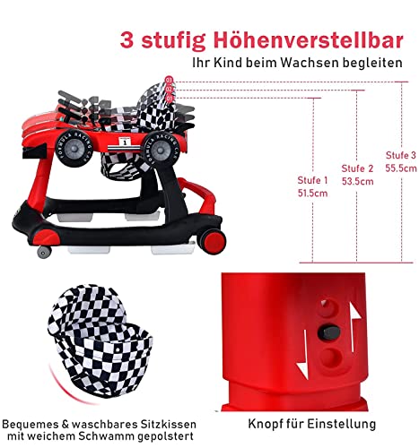 ZXTING Girello Pieghevole 4 in 1, Girello Regolabile in Altezza, Camminata Libera con Musica e Luce, Ausilio per la deambulazione per 6-24 Mesi