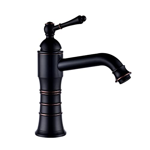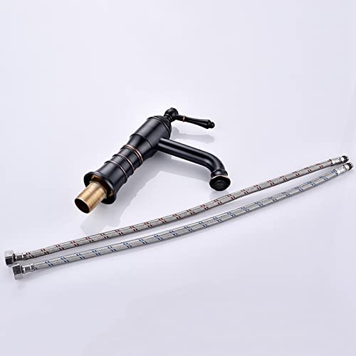 ZYCDP Miscelatore Bagno Vintage Nero, Miscelatore Bagno con Acqua Calda e Fredda, Rubinetto Girevole 360°, Miscelatore Monocomando per Lavabo, corto