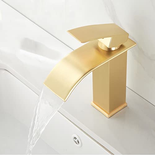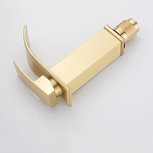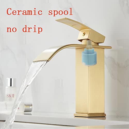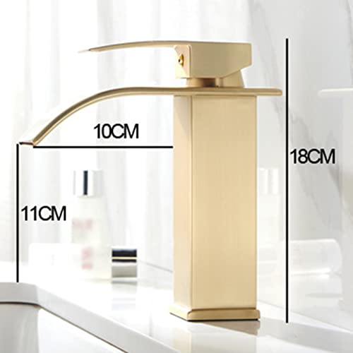 ZYCDP Rubinetto Bagno Cascata oro spazzolato, Rubinetto Cascata in Acciaio inox Acqua Calda e Fredda, Miscelatore Monocomando Lavandino Bagno, Breve