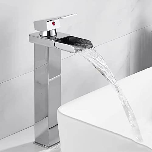 ZYCDP Rubinetto Bagno Lavabo Cascata Cromato, Rubinetto Cascata in Acciaio inox, Rubinetto Miscelatore Lavabo Bagno Maniglia Singola, B, High