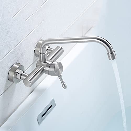 ZYCDP Rubinetto a Muro Lavello Cucina,Spazzolato,Rubinetto Cucina Acciaio Inossidabile,Miscelatore da Cucina a Parete,Miscelatore Monocomando per Lavello Cucina,Acqua calda e fredda