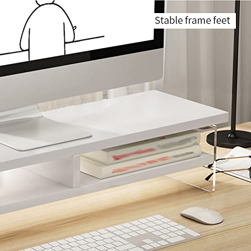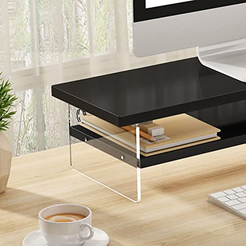 ZYFAB 2 Ripiani Legno Supporto per Monitor, Rialzo per Monitor con Supporto in Acrilico Trasparente Computer Supporto multimediale Supporto per scrivania,Nero,70cm