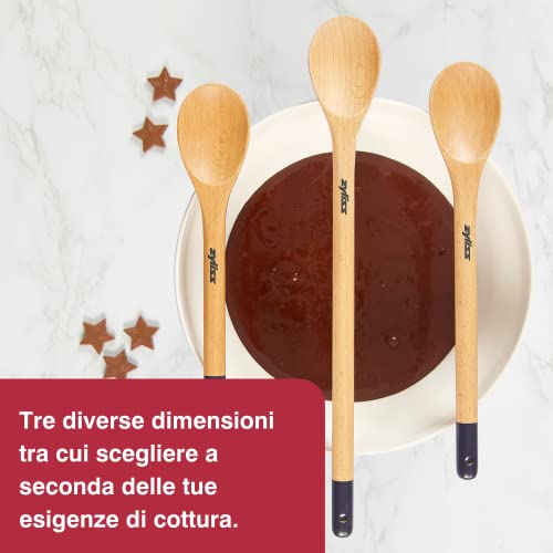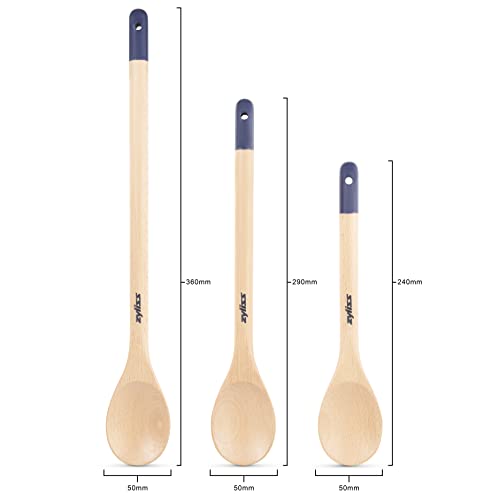 Zyliss E980207 Set Cucchiai di Legno da Cucina, 3 Piezas, Legno di Faggio, Naturale, Blu, Cucinare, Cottura al Forno, Preparazione del Cibo, Legno di Provenienza Responsabile