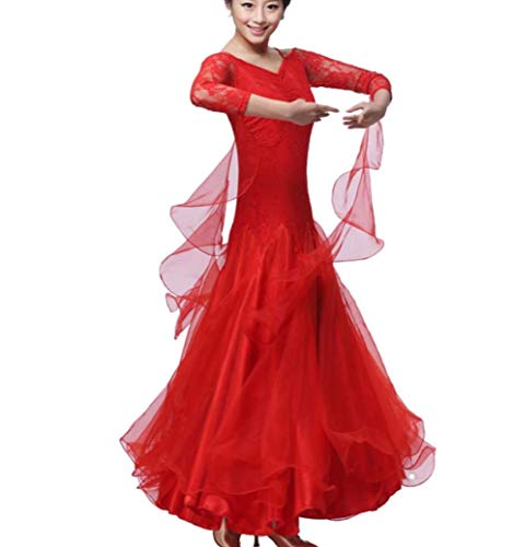 ZYLL Le Donne Moderne Valzer di vango Ballano Vestiti Abiti da Ballo Moderno Vestito Standard Nazionale Abiti da Ballo,Red,XXXL