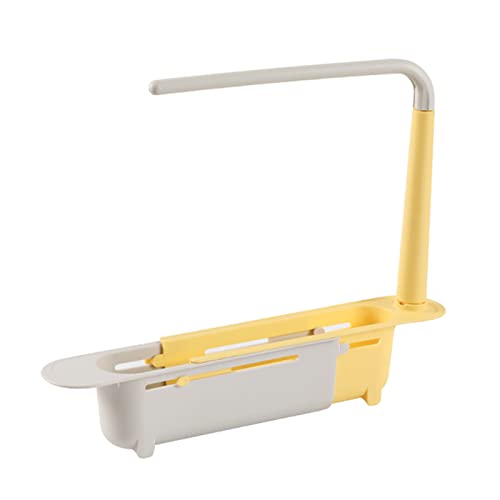 ZYLLZY Scaffale telescopico per lavello, espandibile per lavello da cucina con gancio per strofinacci, scolapiatti regolabile, in spugna e portasapone per cucina domestica (giallo)