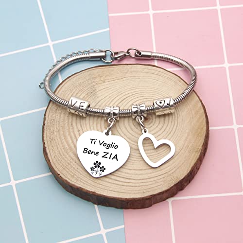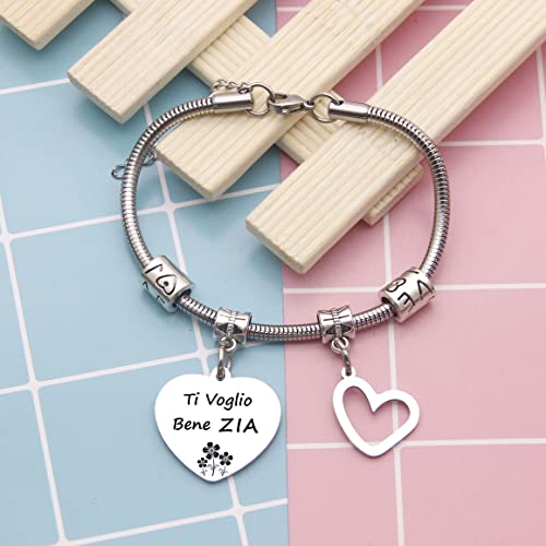 ZYMGUO Regali Zia Bracciale Donna BraccialettiTi Voglio Bene Zia Ciondolo Argento con Incisione Regalo di Compleanno Regali di Laurea