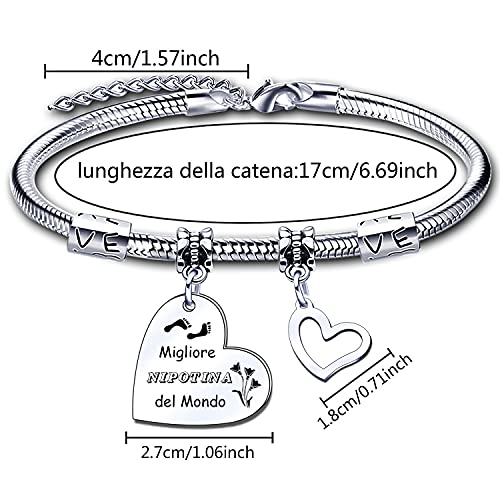 ZYMGUO Regali di Nipotina Bracciale Braccialetti da Donna "Migliore Nipotina del mondo"per Nipotina Regali di Compleanno,Regali di Laurea