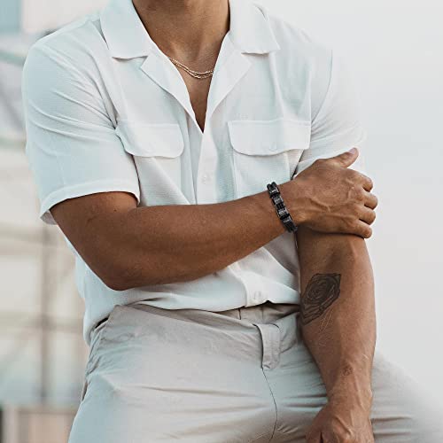 [Bracciale Identificativo Personalizzabile con Nome]Questo braccialetto da uomo realizzato con perline e pelle incise su misura. La pelle è tutta nera che lo fa sembrare cool. Personalizzare il tuo braccialetto con incisione del nome sarà un'idea speciale e unica per regalare la tua amicizia, la tua relazione, il tuo amore, BFF e il tuo amore.