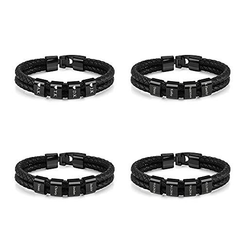 Zysta Bracciale Coppia in Pelle da Donna Uomo con Perline Incisione Personalizzabile, Bracciale Identificativo Personalizzato con Nome Corda Intrecciato a 2 Strati, Regalo per Lui Lei (4 Ciondoli)