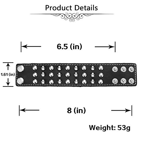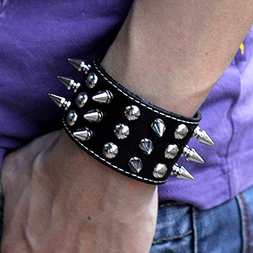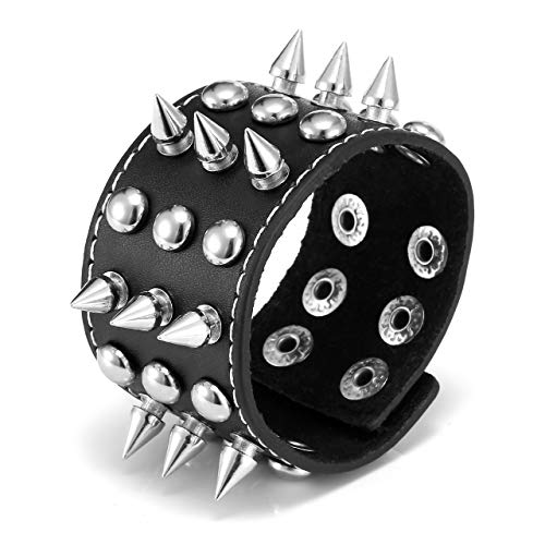 Zysta - Bracciale rigido con rivetti borchiati, in vera pelle, stile punk rock, gotico biker, con polsino largo e regolabile, con cinturino regolabile e Lega, colore: Nero, cod. BBUS060015(K)