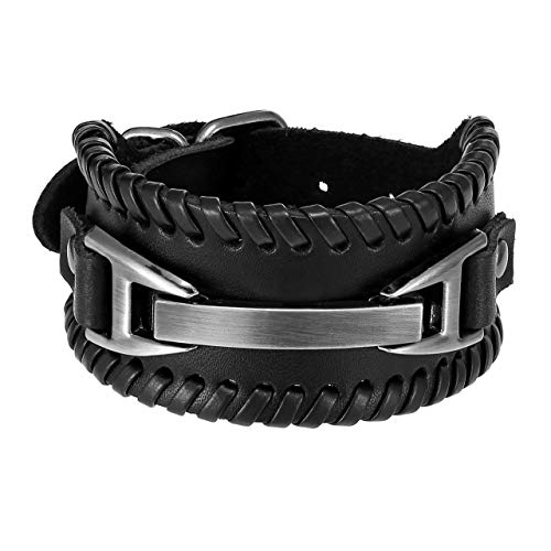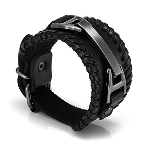 Zysta - Bracciale rigido con rivetti borchiati, in vera pelle, stile punk rock, gotico biker, con polsino largo e regolabile, colore: Stile fibbia., cod. BWUK000013-1