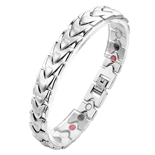 Zysta Bracciale Uomo Braccialetto della salute Anti-fatica 4 in 1 magnetico ioni negativi infrarossi germanio in Acciaio Inossidabile (Argento)