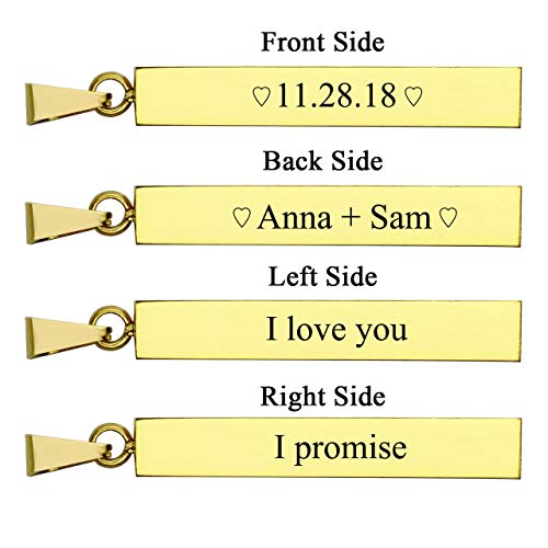 Zysta Unisex Collana Personalizzato Incisione Gratuita Collana Pendente Nome Incisione Bar Barra Acciaio Inox (Argento/Nero/Oro/Oro Rosa) da Uomo Donna-oro
